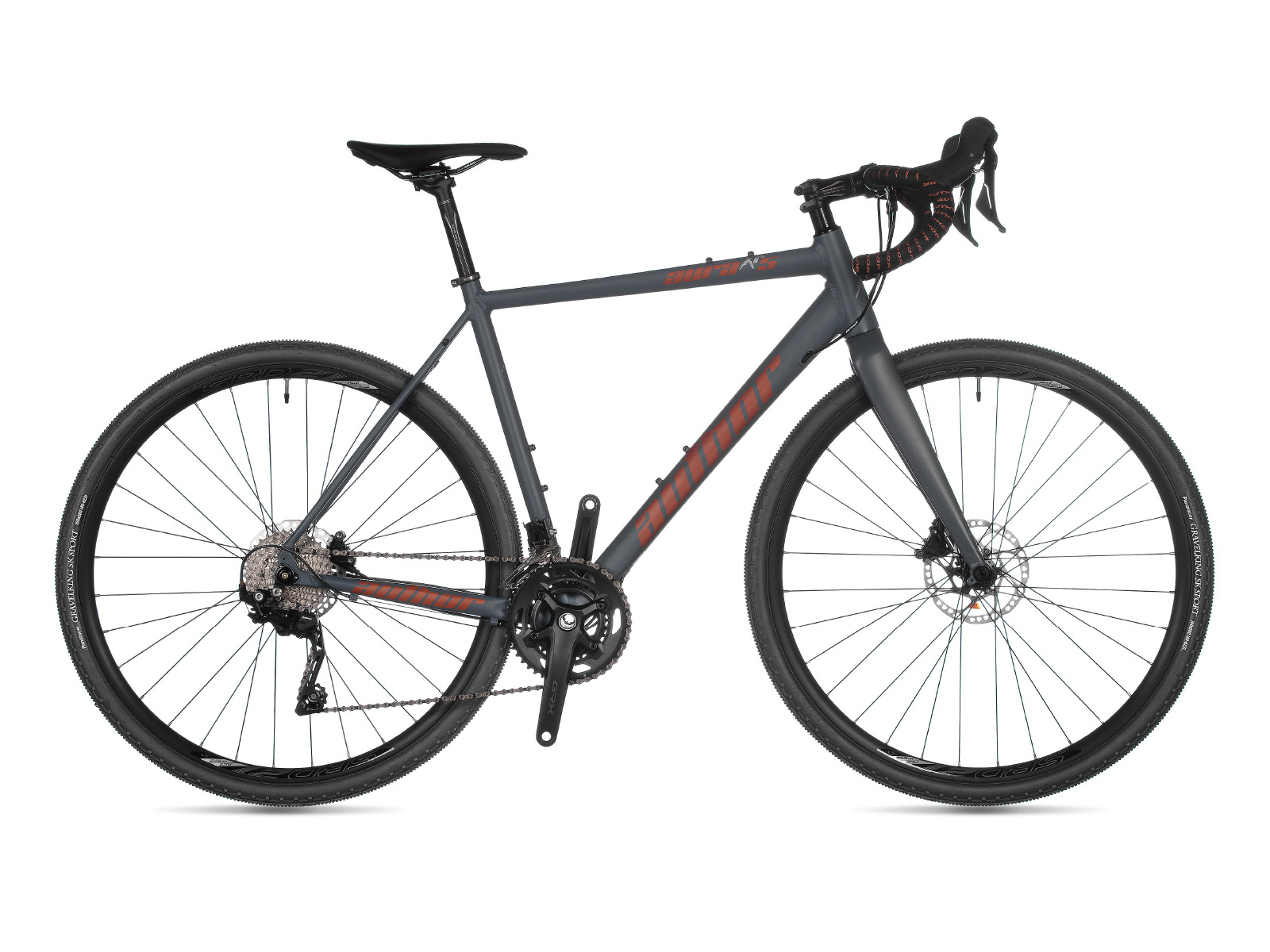 Модель AURA XR5 Год 2021 Материал рамы Алюминий (Alloy) Рама/описание triple butted alloy 6061 Тип вилки Жесткая (карбон) Вилка/регулировки AUTHOR carbon legs, alloy steerer 1.5" tapered Спицы black stainless steel 2.0 mm Обода JALCO SRD 21 32 holes Резина PANARACER Gravel King SK Sport aramid 700 × 38c Тормоза Дисковые гидравлические Тормоз SHIMANO GRX 400 disc hydraulic (160 mm rotors) Тормозные ручки SHIMANO GRX 400 Уровень оборудования Продвинутый Шифтеры SHIMANO GRX 400 (20) Переключатель передний SHIMANO GRX 400 Переключатель задний SHIMANO GRX 400 Цепь KMC X10 Каретка SHIMANO BB-RS500 BB unit Шатуны SHIMANO GRX 600 46-30 teeth 172.5 / 175 mm cranks Количество скоростей 20 Руль PROMAX 420 / 440 / 460 mm Рулевая колонка PRESTINE Integrated 1.5" tapered Вынос AUTHOR Седло AUTHOR Guru CR Подседельный штырь AUTHOR (27.2) Педали - Втулка передняя SHIMANO Road Disc 12 × 100 mm thru front axle 12 × 142 mm rear thru axle 32 holes Вес 10,5 kg / 54 cm Втулка задняя SHIMANO Road Disc 12 × 100 mm thru front axle 12 × 142 mm rear thru axle 32 holes -